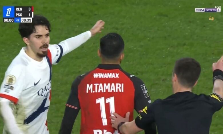 المشهد التاريخي الذي حدث مع موسي التعمري ويحتاج إلي عالم صوتيات ومرئيات ليشرح للعالم كله ما فعله جمهور رين الفرنسي أثناء إستبداله أمام باريس سان جيرمان.