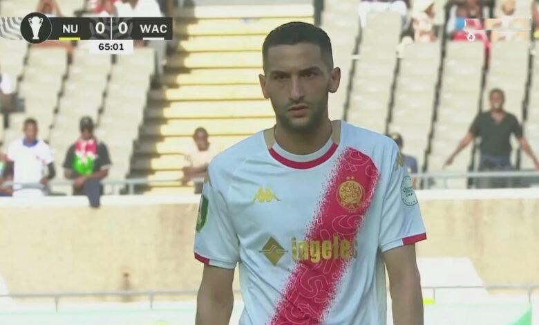 شاهد ما فعله حكيم زياش لحظة استبداله وخروجه من الملعب في مباراة الوداد المغربي ونيروبي الكيني بالكونفيدرالية الافريقية