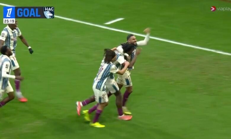 شاهدوا التكنيك العالمي الذي قام به ابن المغرب في تنفيذ الكورنر والارتقاء الجنووني من لاعب لوهافر وانهاء مررعب في شباك الخصم