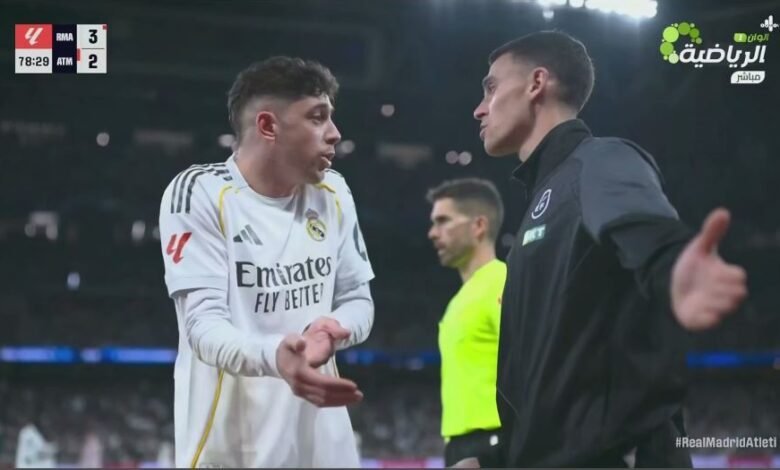 شاهدوا صدمة معلق المباراة وكل من في الملعب لحظة اشهار الكارت الاحمر في وجه فالفيردي بعد مخالفة عادية جداً ضد لاعب اتلتيكو