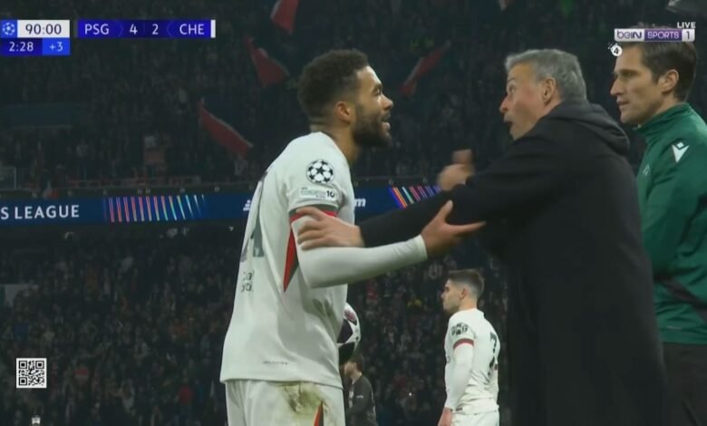 شاهد الإشتباكات-والمشاجرات الجنوونية التي حدثت في الثواني الآخيرة من مباراة باريس وتشيلسي بسبب العجب الذي فعله مهاجم تشيلسي!!