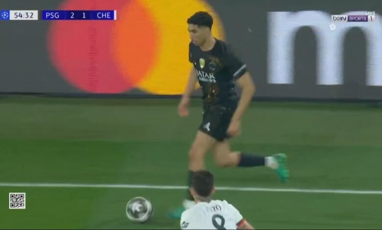 عاااجل: المجنوون المغربي أشرف حكيمي يكسسر كل أرقام العداء الجامايكي بولت بهذه السرعة الجنوونية الخارقة التي إستخدمها في هدف باريس الخامس أمام تشيلسي في دوري ابطال اوروبا!!