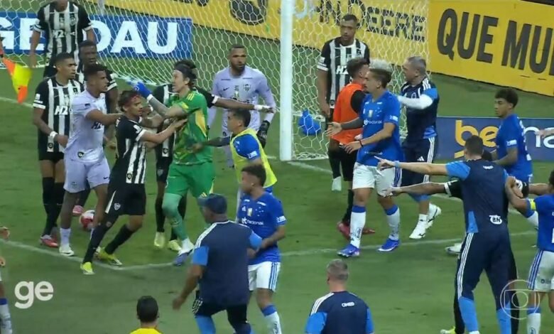 شاهدوا الفوضي التي حدثت بين لاعبي كروزيرو واتليتكو مينيرو وتسبب في طرد 23 لاعب في آخر ثانية قبل اطلاق صافرة النهاية