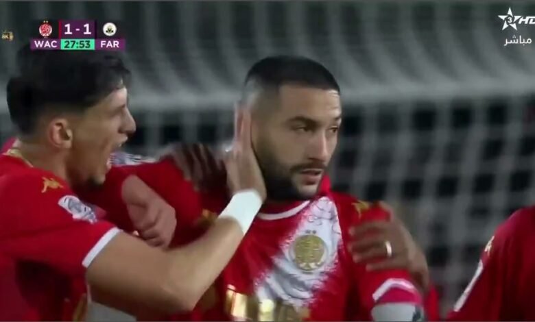 شاهدوا هدف حكيم زياش الصاروخي في مرمي الجيش الملكي والسرعة الأعجوبية التي خرجت بها الكرة من أقدام هذا الساحر المغربي