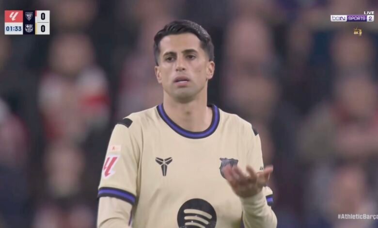 شاهدوا تصرف جواو كانسيلو الكارثي وكيف ارتطمت الكرة بعارضة برشلونة بطريقة لا تصدق بعد أقل من 20 ثانية من ركلة بداية لقاء بلبلو وبرشلونة